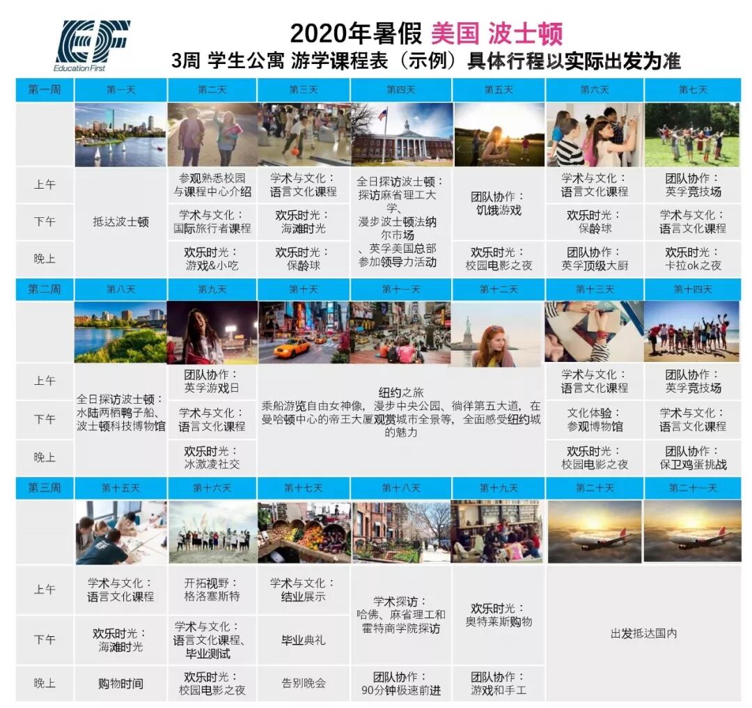 - IMAGE_URL=https://mmbiz.qpic.cn/mmbiz_jpg/J2ibIzjkd3kZ0YTc5nINIRwJHWyaq0WgXgmLK5gE3BV4ND2vnTRlgNmUxFyYD9u4HMSKibtzRbph2yMVPGxgPmnQ/640?wx_fmt=jpeg - 海外人文沉浸体验 - 每周20个课时的全英文小班课堂,根据学员的年龄和级别细分的教材,参与一系列课堂和户外的英孚任务和挑战,角色扮演和小组辩论等,让学员快速强化英语提高;根据不同目的地安排的活动部分,涵盖游览观光、学习参观、体育活动、英孚舞会等,深度体验不同国家的文化和当地生活,让学员全天候沉浸在母语环境。